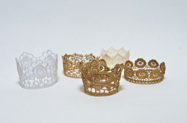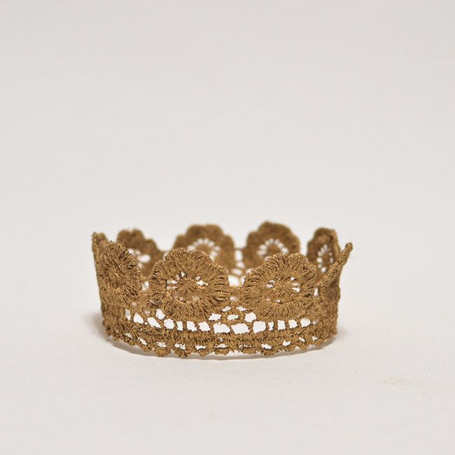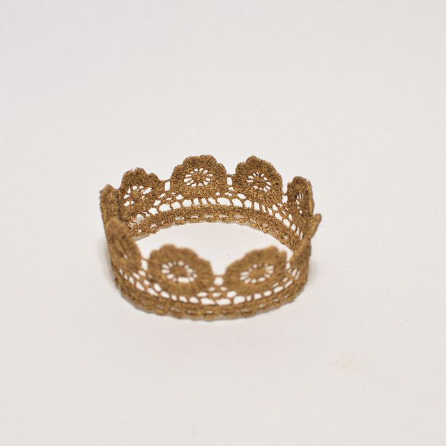 Les couronnes dentelle maillO design sont des objets d'art, des décorations textiles, des créations uniques faites à la main dans mon atelier en France. Elles sont réalisées à partir de ruban et galon dentelle ancien, durcis et peints. Vous pouvez choisir votre couleur sur commande. Elles s’exposent en décoration unique, elles se portent pour tou.te.s celleux qui se rêvent princes et princesses et subliment vos galettes des rois.