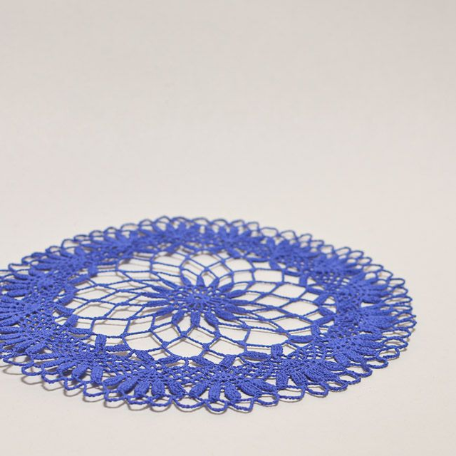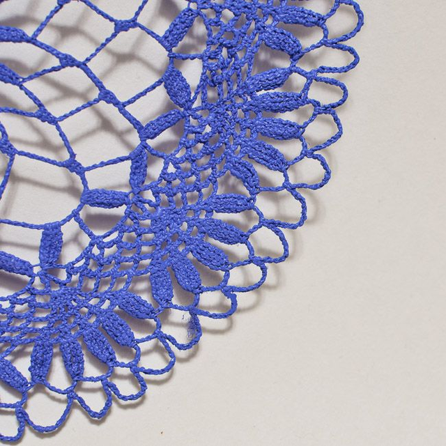 Décoration réalisée à partir d’un napperon durci à plat et peint. Diamètre 28cm