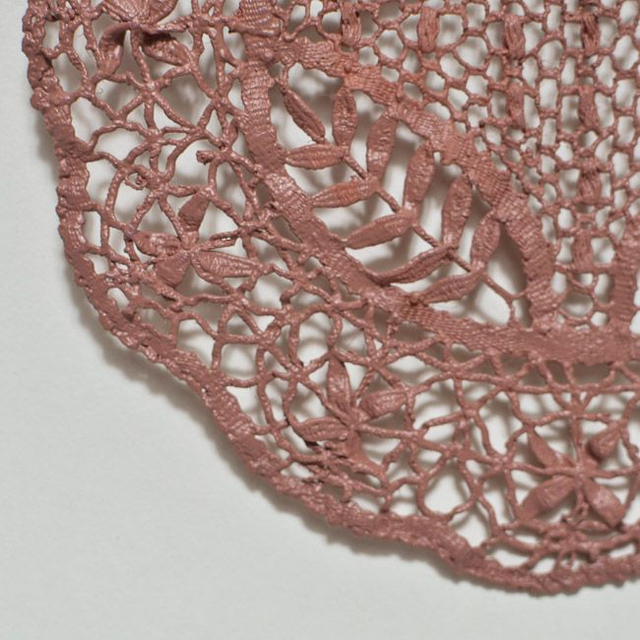 À poser ou fixer au mur avec une petite pointe. Pièce unique. Coloris vieux rose.