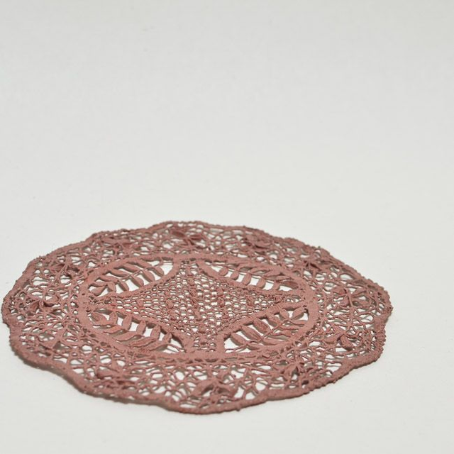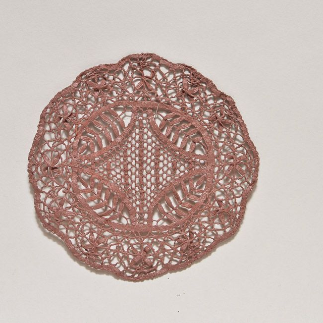 Décoration réalisée à partir d’un napperon durci à plat et peint. Diamètre 20cm